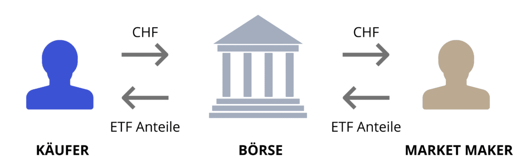 Wer als Market Maker agieren darf, wird von der jeweiligen Börse festgelegt. An der von SIX betriebenen Schweizer Börse sind insgesamt 18 Market Maker für ETFs zugelassen. Es ist auch die Börse, die gewisse Anforderungen an die Market Maker stellt. So muss ein Market Maker zum Beispiel zu den offiziellen Handelszeiten im Auftragsbuch präsent sein und seine gestellten Kurse dürfen einen gewissen Spread nicht überschreiten.