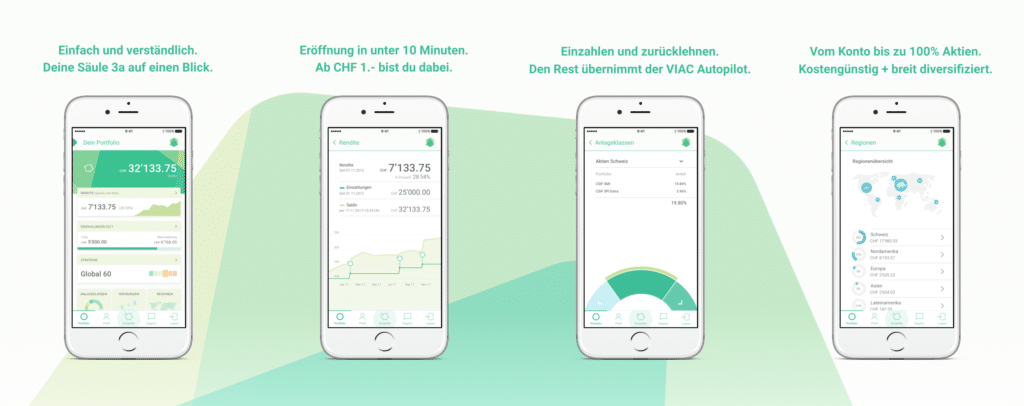 Der Pionier auf dem Schweizer Markt war VIAC. Im Jahr 2018 kam er mit einem digitale und kostengünstigen Produkt auf den Markt. Gerade bei einem langen Anlagehorizont kannst du mit tiefen Kosten auf die gesamte Anlagedauer mehrere tausend Franken sparen!